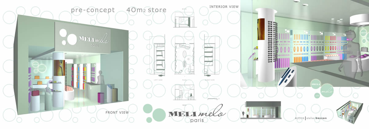 Studio commissionato dalla catena di punti vendita Meli Melo paris che conta più di 40 spazi esistenti in Romania. La richiesta di sviluppo di un nuovo Concept dedicato alla vendita di accessori moda ha portato alla rilettura totale degli spazi fino alla definizione di un nuovo logo e dell’immagine coordinata.