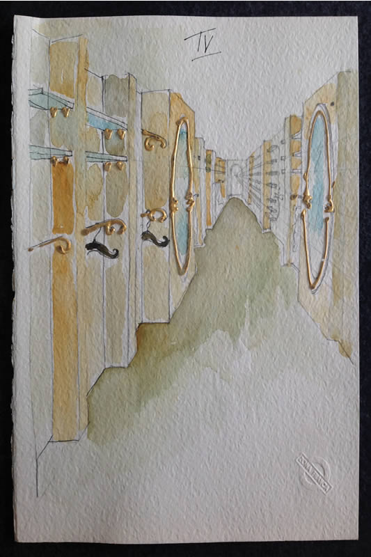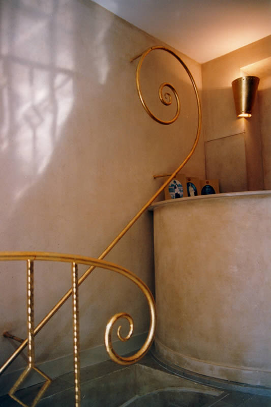 Un manto di sottili foglie d’oro veste di luce le parti in ferro forgiato, quale metafora della filosofia di questa maison riassumibile nel motto “naturale e raffinato”.