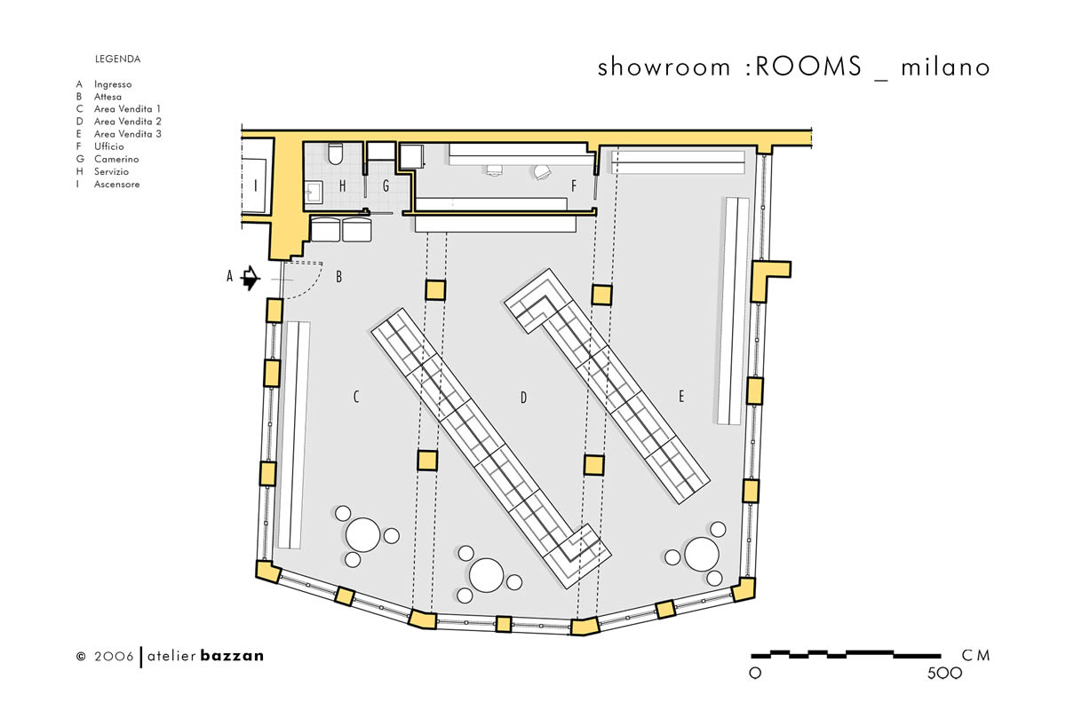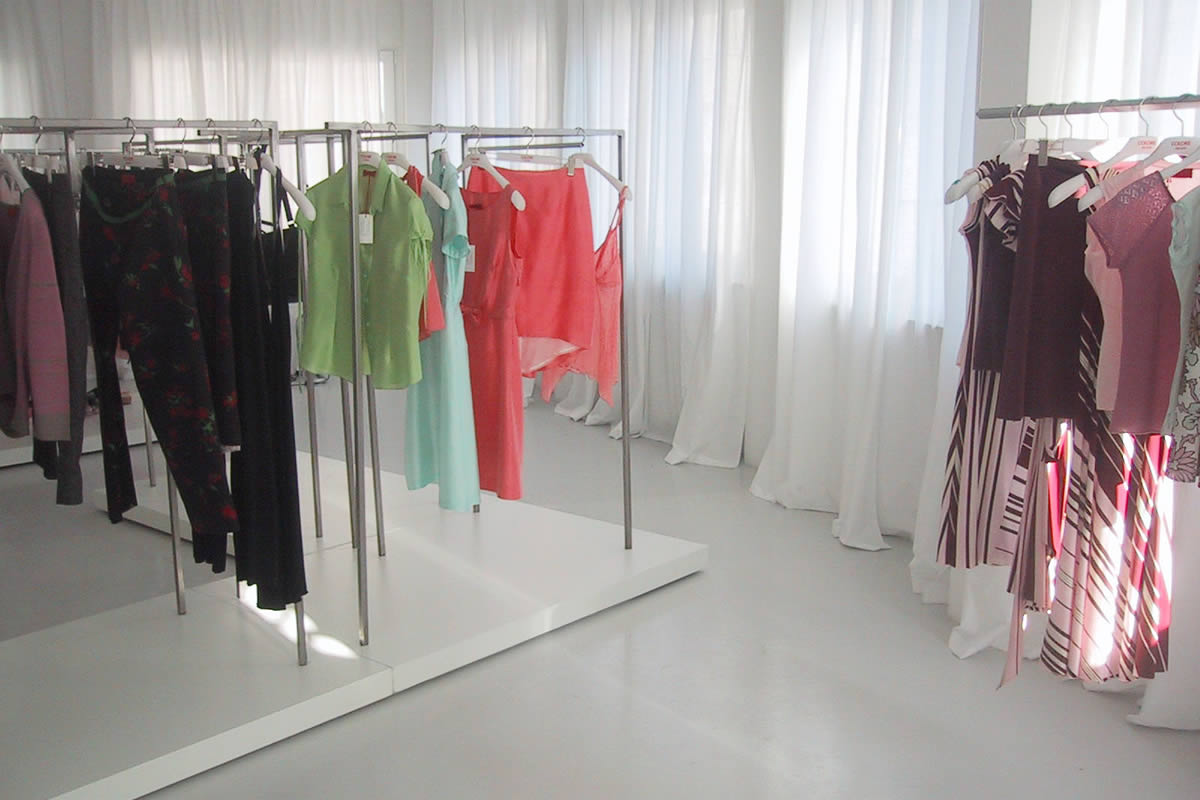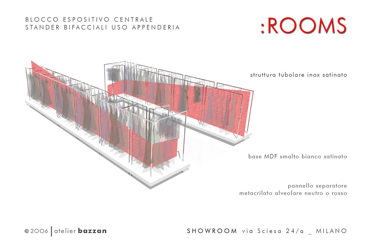 Questo showroom multi-brand collocato in via Sciesa a Milano si presenta come unico ambiente caratterizzato dal total white degli spazi, scelta che permette alle collezioni di essere sempre protagoniste. Lo spazio risulta organizzato da due elementi espositivi bifacciali posti in diagonale e dedicati all’appeso, mentre un ulteriore struttura laterale è adibita all’appoggio.