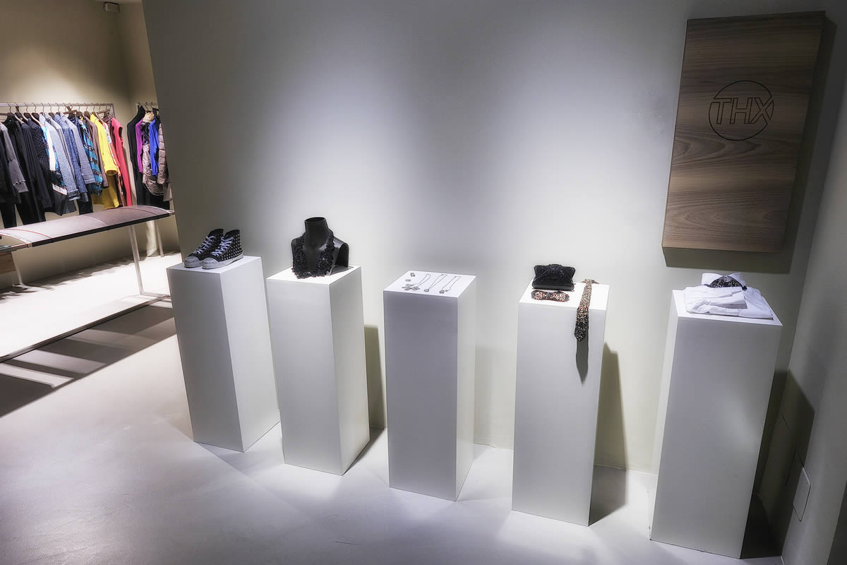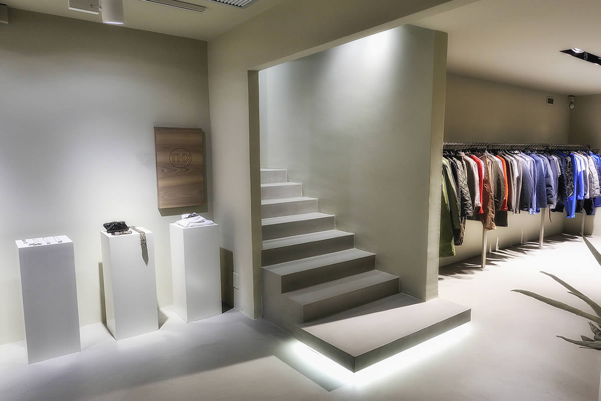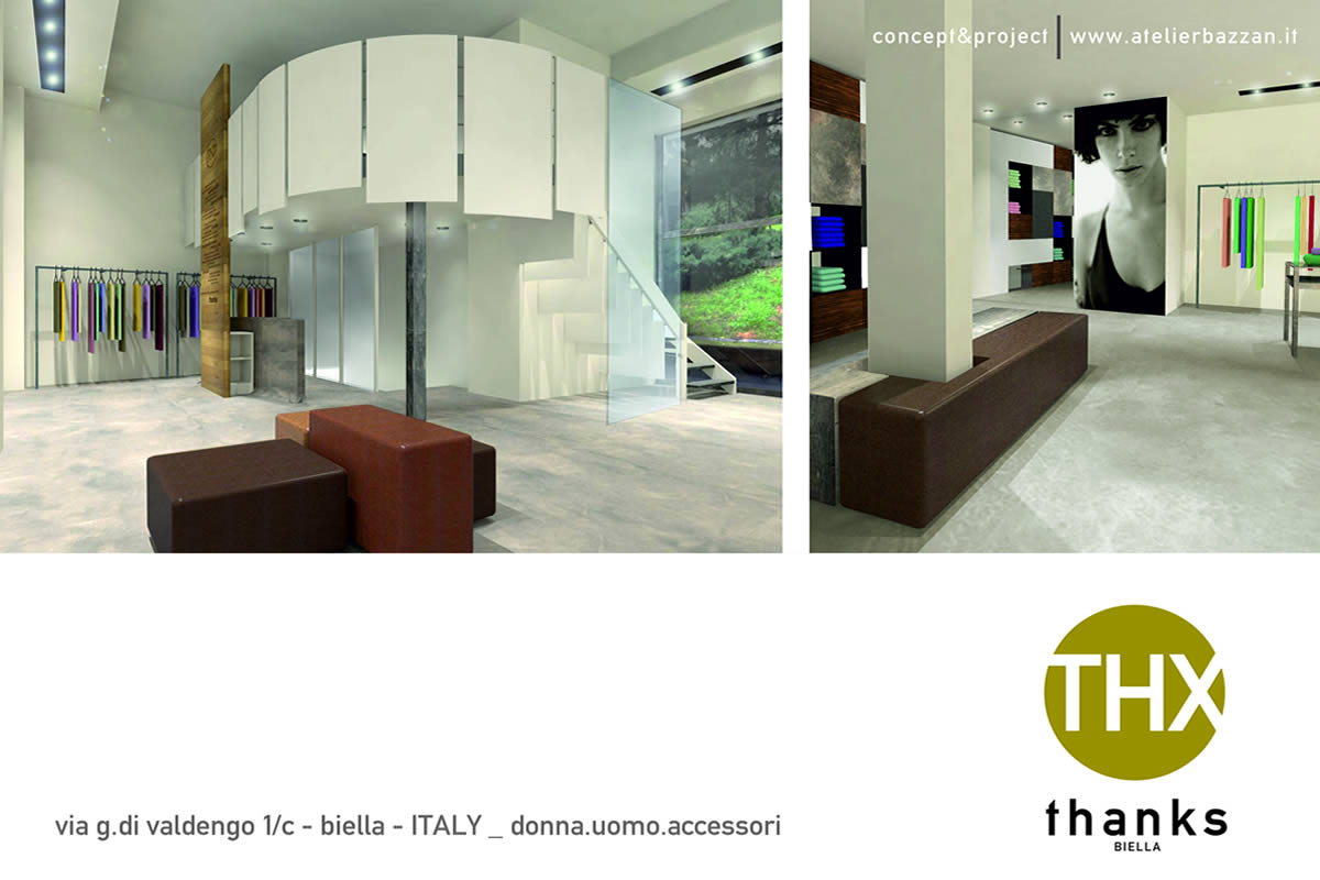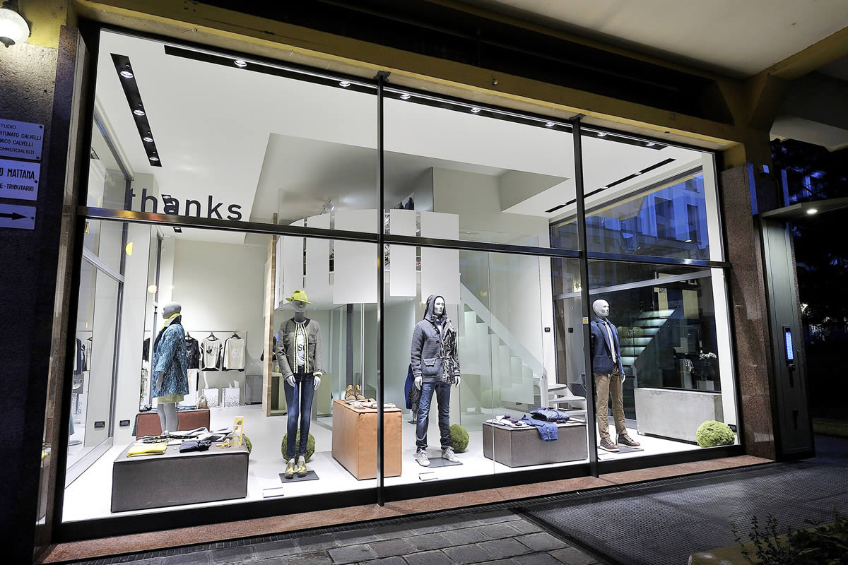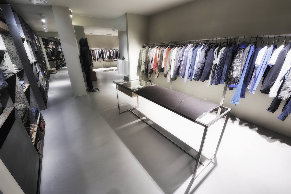 Lo spazio disposto su tre livelli, si presenta inizialmente come un'ampia teca in vetro a filo strada contenente un articolato volume angolare che accentra le funzioni distributive e contenitive. Sorta di spazio scenico in continuo divenire, funzionale alla presentazione delle proposte di abbigliamento, accessori ed oggetti oltre ad ospitare mostre ed eventi.