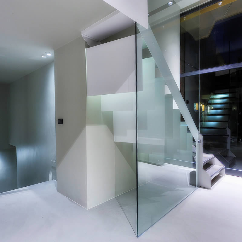 Tutto è contenuto all'interno di una scatola neutra dominata dalle calde tonalità del grigio dei pavimenti in Resina e della tinteggiatura di pareti e soffitti.