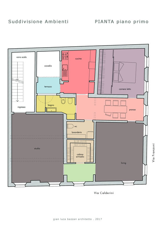 Gli spazi originari sono stati riletti completamente nel loro utilizzo, realizzando una sequenza inusuale degli ambienti che conferisce particolare carattere all’insieme, rispondendo esattamente alle volontà dei committenti.